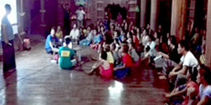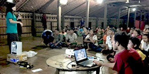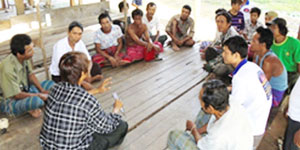 MAM's community engagement (Karen) staff in discussion with villagers explaining about malaria and importance of MDA